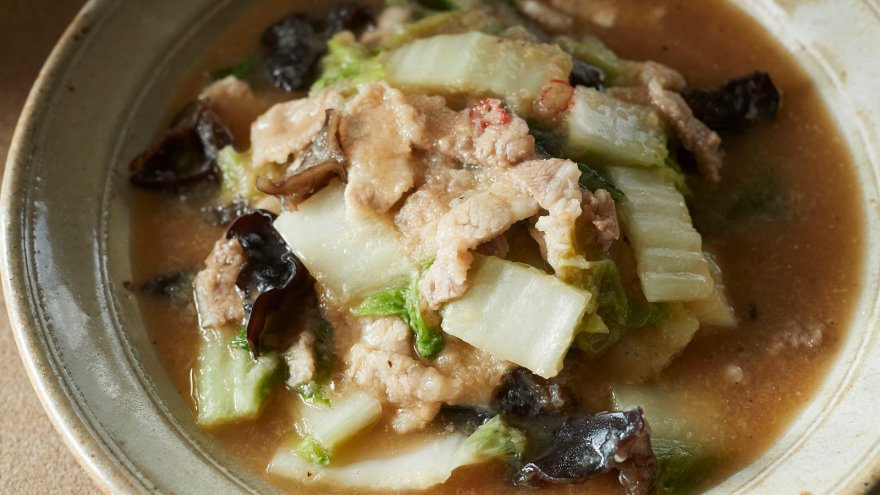 すりおろしたかぶが煮汁とからんで、のどごしよく、滋味深い味わいに。白菜ときくらげの食感が満足感をアップします。