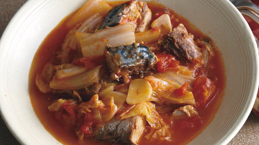 クッタリと煮えた白菜に、さばとトマトのうまみがジワッとしみ込みます。ストック食材でつくれるラクうまおかずです。