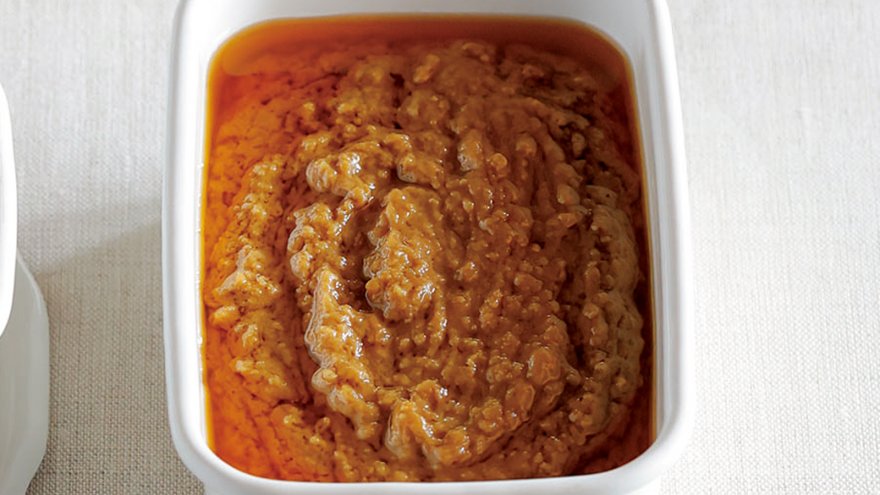 野菜にかける・あえる・のせて焼くだけで、手軽に一皿がつくれる「野菜おかずのもと」。粗くすりつぶしたごまの食感と、ピリッとした辛みがアクセントです。