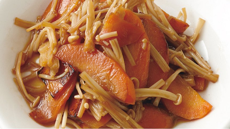 お弁当におすすめの副菜。薄切りのにんじんとえのきだけなら、すぐに火が通って簡単です。しんなりしたえのきだけに甘辛味がよくなじみます。