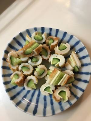 ちくわの穴にはさむだけ。梅の酸味がアクセントになって、箸休めにもなる名脇役おかずです。