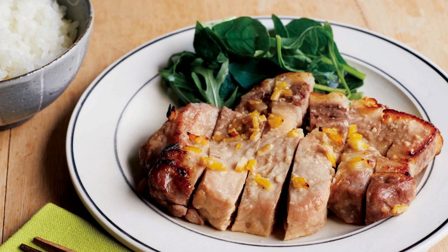 塊肉を好みの厚さに切って味をつけておけば、あとは焼くだけ。塩こうじのやさしい味わいに、レモンの爽やかな香りが絶品!