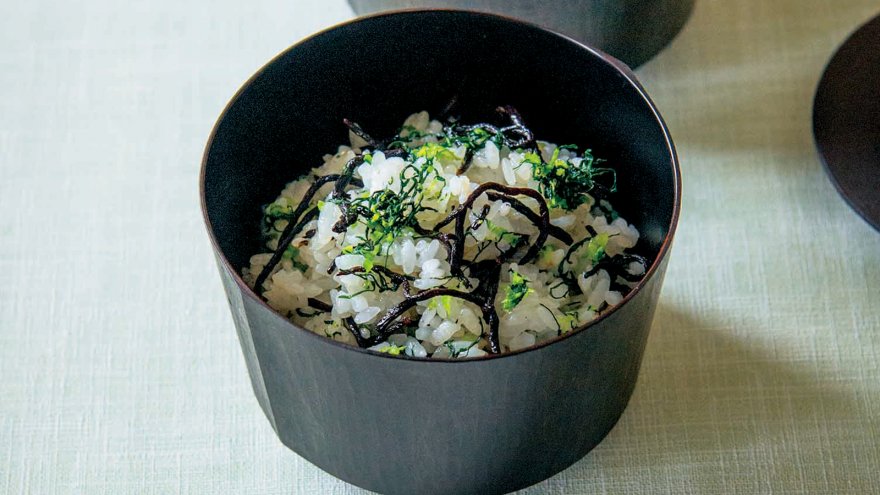 かみしめるたびに磯の香りが広がるごちそうご飯。「ひじきの炒め物」をつくっておけば、塩もみした小松菜と一緒に混ぜるだけで手軽にできるのもうれしい。