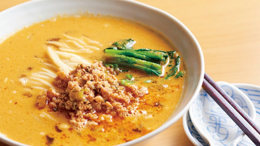 昆布とひき肉のうまみを合わせた、味わい深いスープがベース。スープをとったひき肉は、肉みそにも活用します。野沢菜漬けの風味と食感でおいしさアップ! 辛さは好みで加減を。