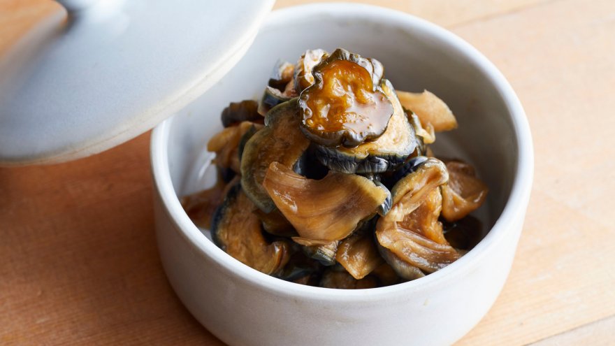 きゅうりは5mm厚さの輪切りにし、なすは5mm厚さの半月形に切る。新しょうがは皮をスプーンでこそげ、薄切りにする。