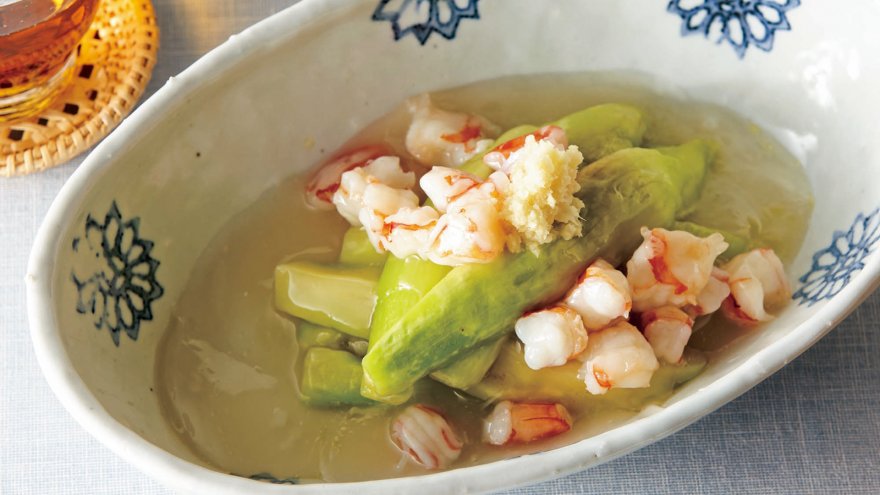 透き通った【えびあん】だからこそ、なすの彩りが生きる。