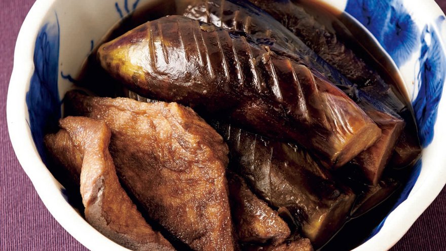 フツフツとしてきたら油揚げを加え、ふたをして10分間ほど煮る。火を止めて、そのまま冷めるまでおき、味を含ませる。