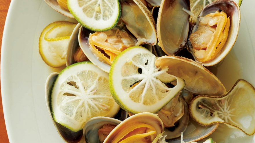 かぼすの爽やかな香りで、いつもの酒蒸しがワンランクアップ!蒸し汁もおいしいので、ご飯にかけたりパンを浸したりして召し上がれ。