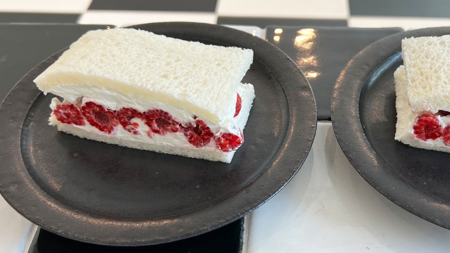 生のラズベリーが手に入ったら、シンプルなフルーツサンドはいかがでしょう?ヨーグルトクリームの程よい酸味が、生のラズベリーの甘さを引き立てます。