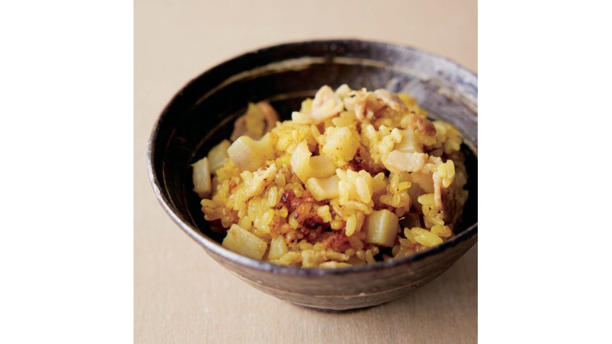 炊飯器の内釜に米、【A】を入れ、2合の目盛りまで水を加え、カレー粉を加えてよく混ぜる。2をのせ、普通に炊く。炊き上がったらサックリと混ぜる。
