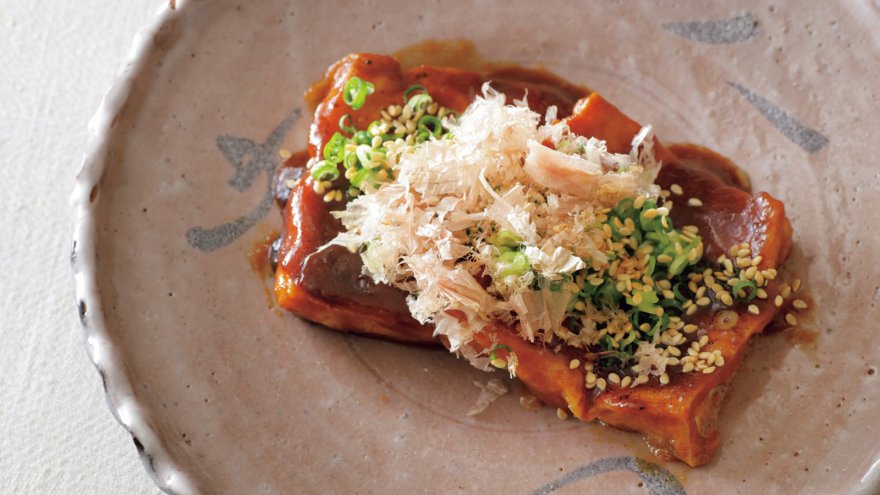 厚揚げだけでも食べごたえは抜群!うまみそ酢の濃厚な味で、ご飯がすすみます。細ねぎや白ごまをたっぷりのせて、ごちそう感を。