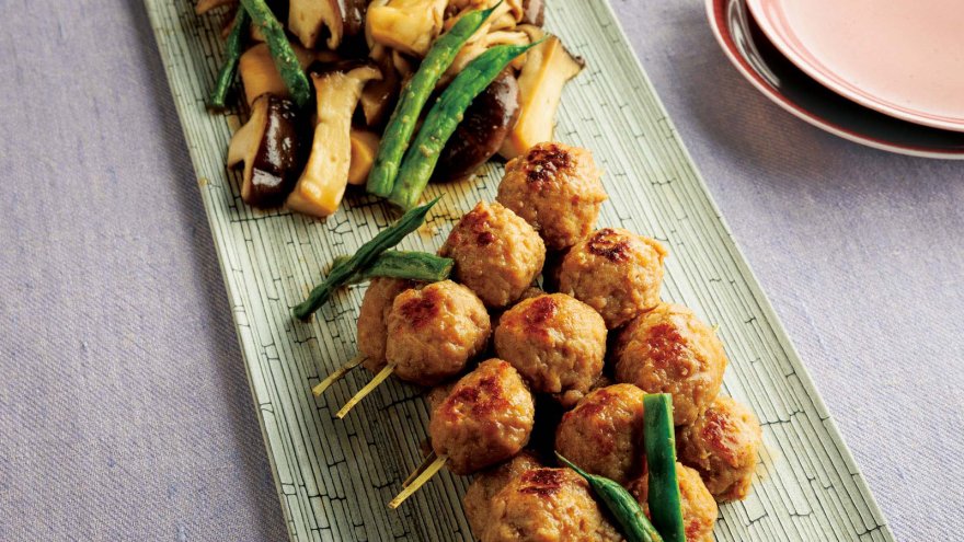 笠原家のいつものメニューを、盛り方の工夫でパーティー仕様に。つくねはゆでてから焼くと、柔らかな食感に。仕上げに竹串に刺すと食べやすく、ごちそう感も出ます。