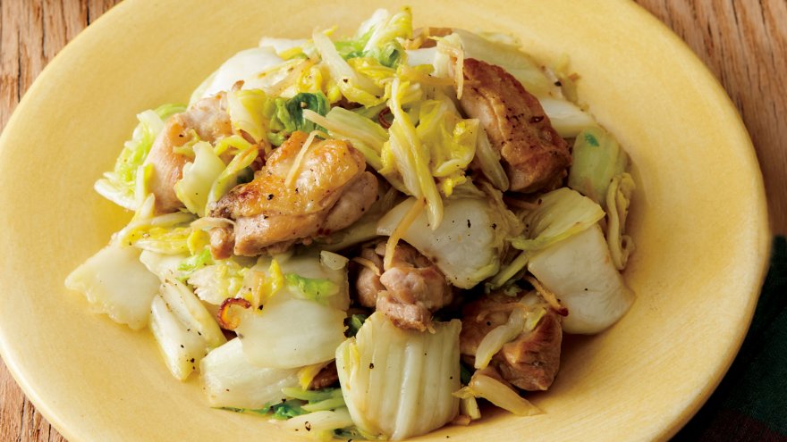 塩もみ白菜と鶏もも肉のしょうが炒め