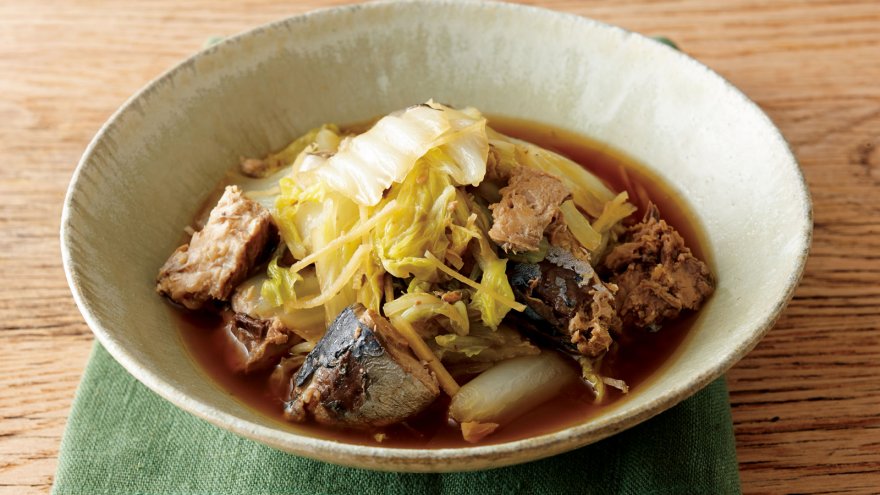 さば缶がメインおかずに大変身。クタクタの白菜に、さばのうまみがしみ込んで、滋味深い味わいです。