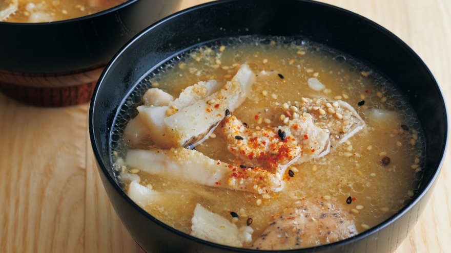 れんこんはたたいて味をしみ込みやすくし、ダイナミックな食感を楽しみます。みそは2回に分けて加えるのがポイント。1回目はスープの下味に、2回目で風味をプラス。