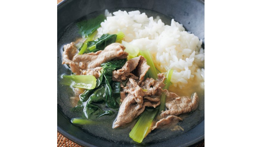 小松菜と牛肉のスープかけご飯