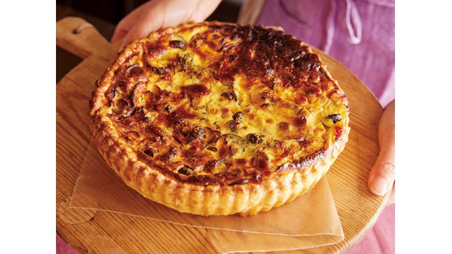フライパンにサラダ油大さじ1を弱火で熱し、ねぎ、塩1つまみを入れてじっくりと炒める。ねぎがしんなりとしたら、きのこ、サラダ油大さじ1、塩1つまみを加え、汁けがなくなるまでよく炒める。味をみて塩・黒こしょう各適量で調え、粗熱を取る。オーブンは200℃に温める。