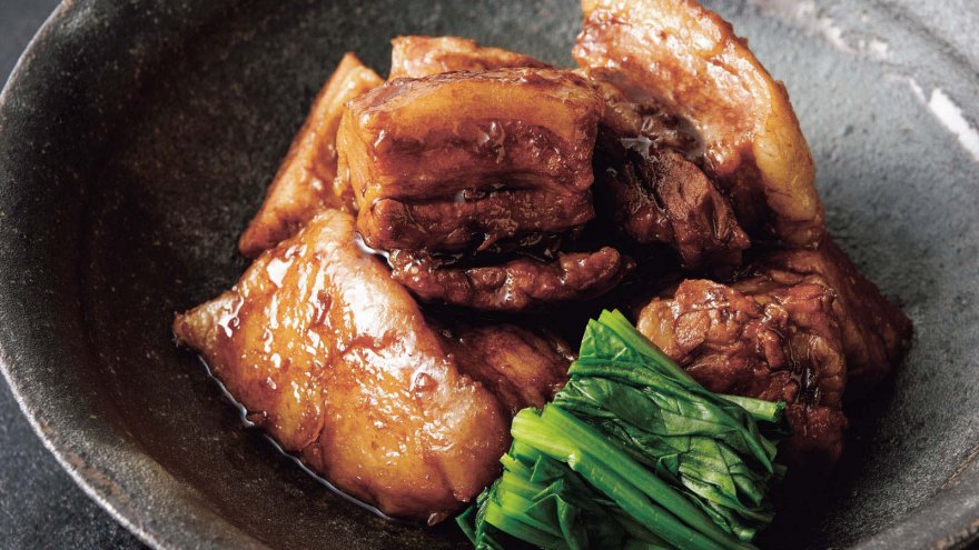 食べる分の豚肉と煮汁適量を小鍋に入れて中火にかける。煮汁が煮詰まってきたら、鍋を揺すって豚肉にからめ、トロリとするまで煮る。ほうれんそうは熱湯でサッとゆでて水けを絞り、食べやすい長さに切って酢少々をからめ、豚の角煮とともに器に盛る。
