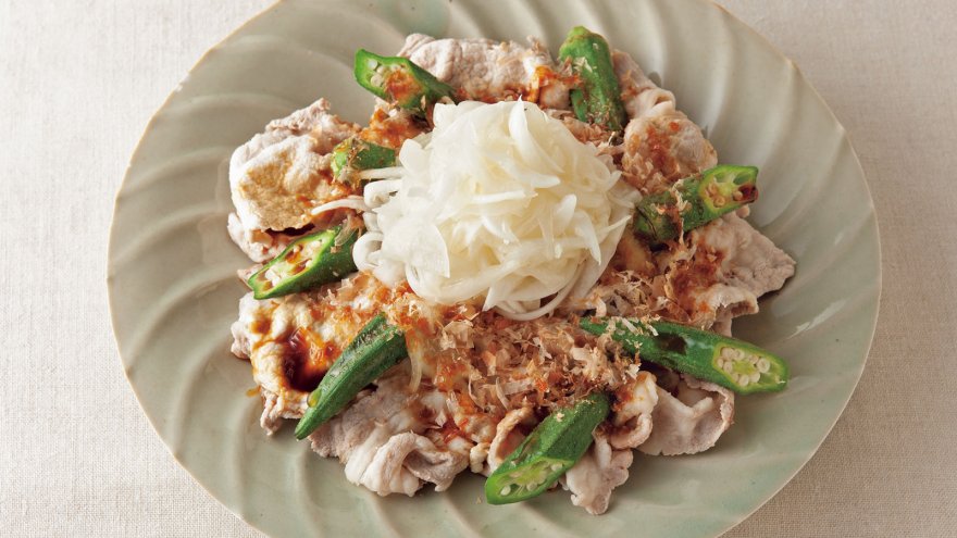 しんなりしたはちみつ酢たまねぎが豚しゃぶによくからみます。程よい甘みはしょうゆ味にピッタリ。オクラの食感がアクセントになります。