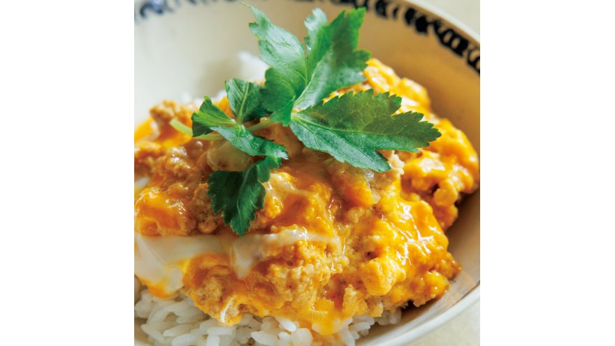 パパッとつくれる、親子丼風どんぶり。うまみたっぷりの煮汁がご飯にしみて、間違いないおいしさ!