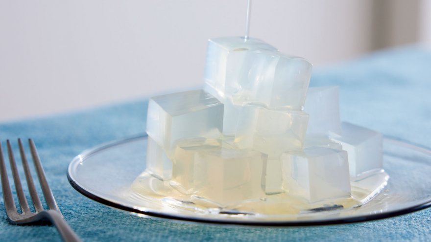 2が透明になったら火を止め、ざるでこして、サッとぬらしたバットに流し入れる。冷めて固まったら冷蔵庫で冷やす。