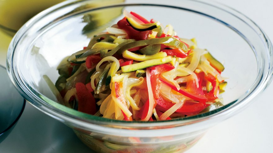 野菜を細切りでそろえると、早く火が通って、味のなじみもよくなります。温かいうちに食べても、冷やしてもおいしい。
