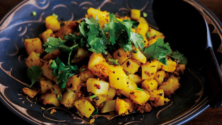 スパイスの香ばしさと辛さで、じゃがいもが力強い味わいに。ご飯によく合う、インドのおかずです。