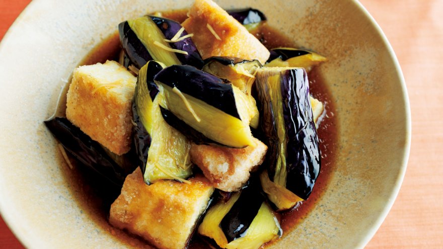 揚げたてのなすをつけ汁にジュッとつけた定番おかず。カリッと揚げた厚揚げのおいしさも格別です。