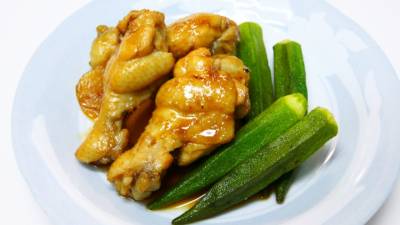 オクラと手羽元の黒酢煮