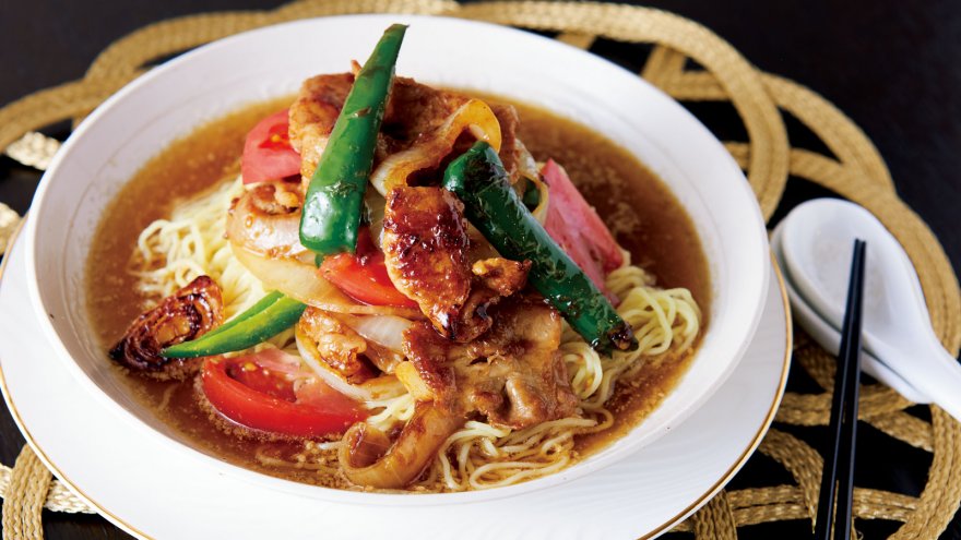 冷たい麺とたれに、温かい豚のしょうが焼きをトッピング!肉や野菜の焼き目の香ばしさと脂のコクが加わることで、いつもの冷やし中華とまったく違う味わいになります。元気になれる一皿です。