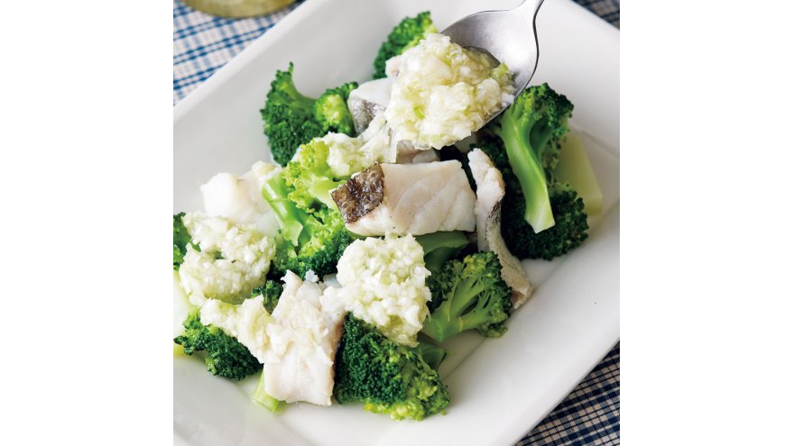 フライパンにブロッコリー、たらを順に重ねて入れる。【A】を加えてふたをし、強火にかける。沸騰したら弱めの中火にして6~7分間蒸し煮にする(途中、水分がなくなったら水大さじ1を足す)。汁けがなくなったら器に盛り、ねぎソースをかける。