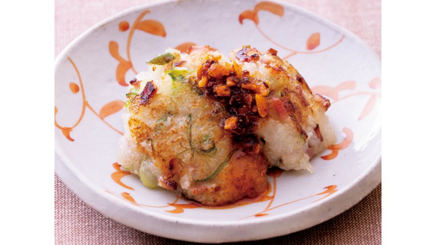 フライパンにごま油小さじ2を中火で熱し、2を大きめの一口大に丸めて並べ入れ、ふたをして3分間焼く。上下を返し、再びふたをして弱火にし、2分間焼く。器に盛り、好みでラー油をかける。