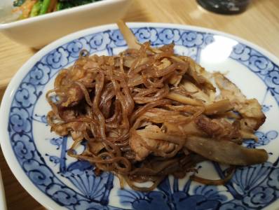 フライパンにサラダ油小さじ1を中火で熱し、豚肉を入れて広げ、サッと炒める。ごぼう、糸こんにゃくを加えてさらに1分間ほど炒める。【A】を順に加えて全体を混ぜ、ふたをして5分間ほど煮る。ふたを取って混ぜ、少し火を強めて汁けがほぼなくなるまで煮る。