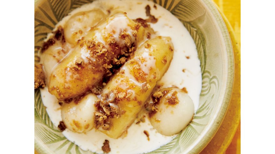 焼きバナナと白玉のココナツミルクがけ