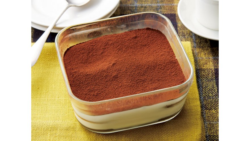 1の【クリーム】の1/2量を入れ、表面を平らにする。残りのビスケットを2と同様に【コーヒー】にサッと浸してのせ、残りの【クリーム】を入れて表面を平らにする。冷蔵庫で約2時間冷やす。ココアパウダーを茶こしに入れ、表面にふりかける。