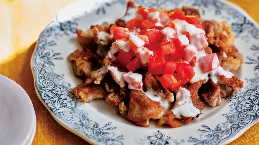 カリカリ豚のヨーグルト塩こうじだれ