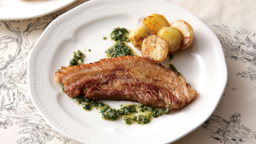 暑くなってくると巴里さんが食べたくなるのは、スタミナをつける豚肉!旬のパセリをたっぷり使ったパセリソースは、ガツンとしたうまみと酸味があり、肉や魚と相性抜群です。