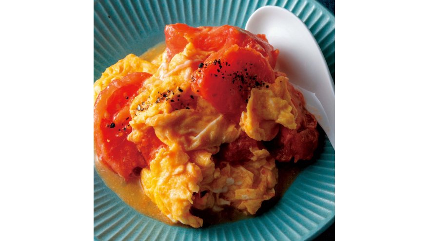 朝ごはんのおかずや、あと一品がほしいときに大原さんが何度も助けられた炒め物です。思い立ったらすぐにつくれて、おいしさは折り紙つき。トマトの爽やかな酸味が食欲をそそります。