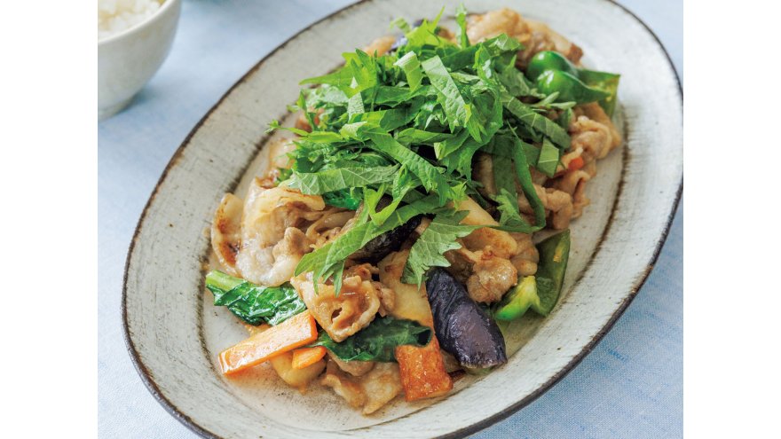 余り食材をおいしく食べきる肉野菜炒め。どんな食材でもだいたいOKですが、たっぷりの青じそだけはマスト。甘じょっぱいみそベースの味と相まって、食欲をそそる最強のご飯のおかずに。