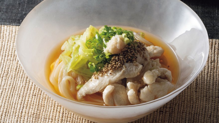 水晶なすと鶏の冷やしうどん