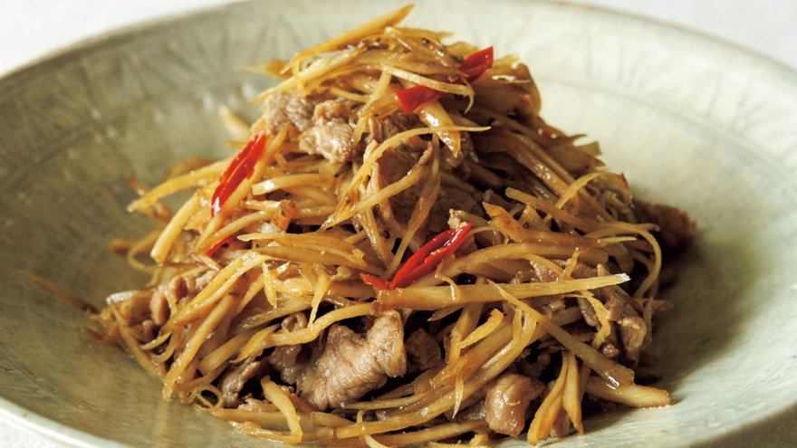 ごぼうのシャキッとした歯ざわりが残るように炒める。