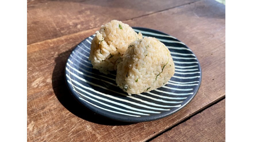 ごはんに【A】と青じそを混ぜて、4等分しておにぎりをつくる。