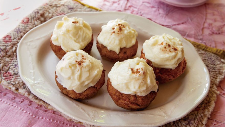 ゴムべらで4のキャロットケーキに等分にのせ、【フロスティング】の表面をなでるようにして整える。仕上げにシナモンパウダー適量(分量外)をふる。