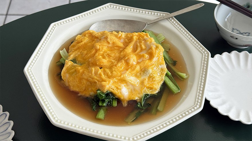 かぶれ菜と小松菜のあんかけ 卵のせ
