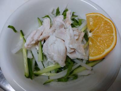 ささ身の酒蒸しサラダ 塩ごまだれ添え