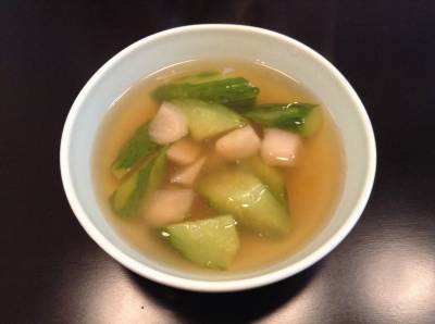 - *鶏ガラスープの素を表示どおりに湯で溶く。