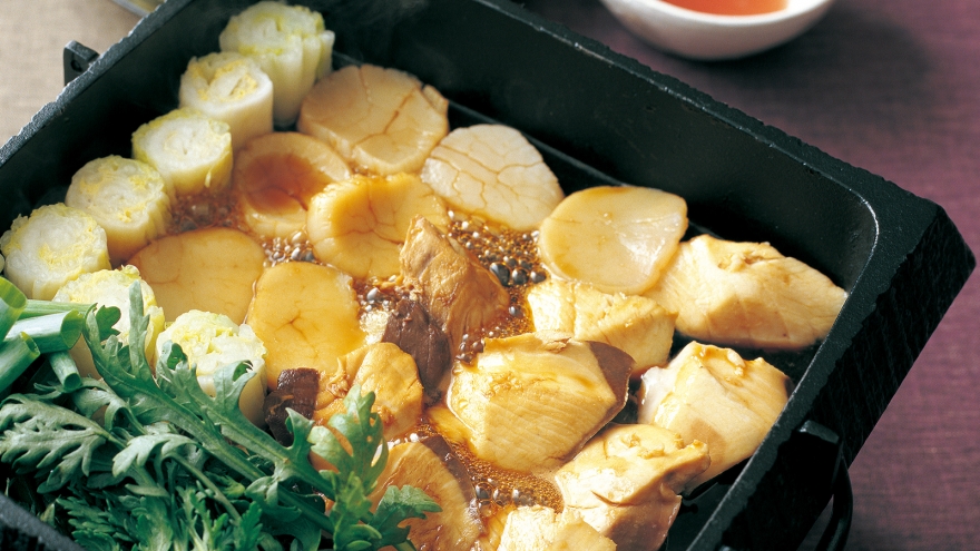 具や割り下に変化をつけた新感覚すき焼きはいかが?溶き卵や梅だれをつけてどうぞ。