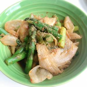 レタスはシャキッとゆで上げる、アスパラガスは根元をたたく、これで百点満点のあえものに。