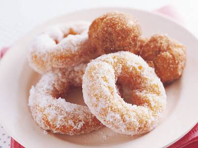 ホットケーキの生地とバターで、風味のよい、ふんわりドーナツのでき上がり。