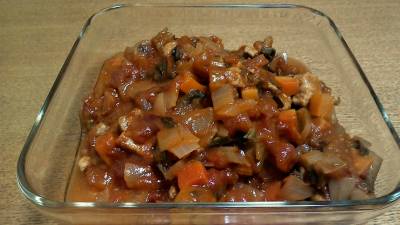 にんじんやたまねぎなどの野菜も冷凍で柔らかくなります。野菜のうまみたっぷりのトマト煮です。